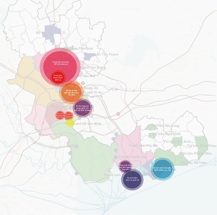 Theo Đồ án điều chỉnh quy hoạch TP.HCM đến năm 2040, tầm nhìn 2060, mô hình phát triển mới định hình TP.HCM thành siêu đô thị đa trung tâm, gồm sáu phân vùng chính: