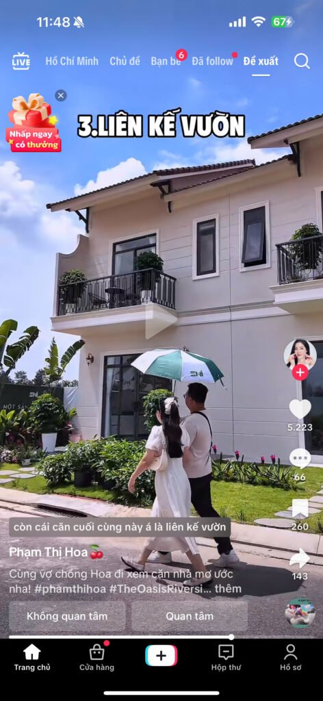 Tuần qua, Tiktoker Phạm Thị Hoa – gương mặt trẻ quen thuộc trong cộng đồng lifestyle & review bất động sản – đã có chuyến tham quan nhà mẫu dự án The Oasis Riverside. Cô chia sẻ cảm nhận đầy chân thật, gần gũi trên kênh cá nhân, thu hút hàng chục nghìn lượt xem và tương tác tích cực.