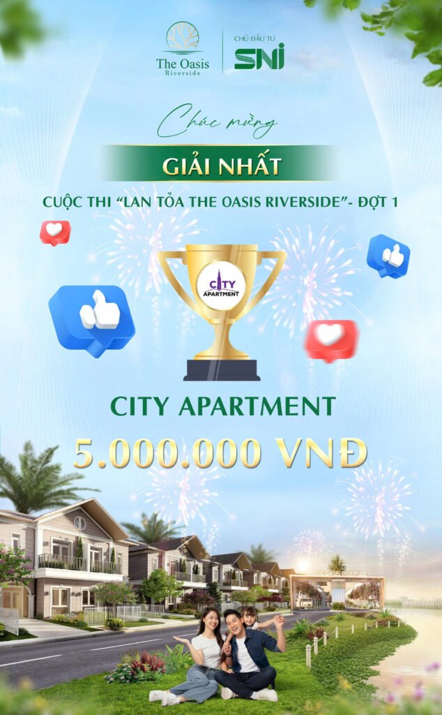 Với 59 link chia sẻ hợp lệ, City Apartment đã thể hiện tinh thần chuyên nghiệp, sáng tạo và bền bỉ trong việc lan tỏa thông tin dự án The Oasis Riverside đến cộng đồng.